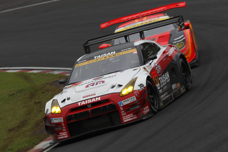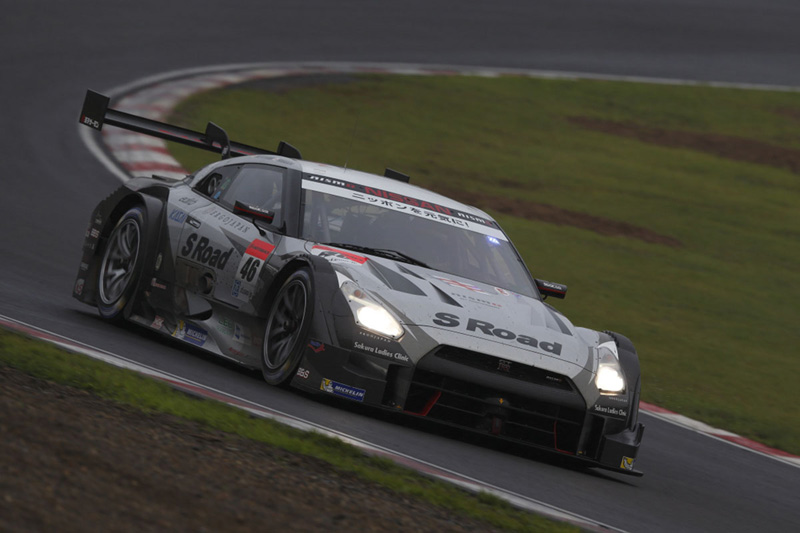 從占據(jù)優(yōu)勢的第5位發(fā)車后,駕駛#12 GT-R的奧利維拉以穩(wěn)健的操控技能一直保持在第4名。更換車手后,安田也一直保持著這一名次,但是,在比賽后期,他的成績跌至第7名,由于再次開始下雨,賽車滑出賽道,成績也再次下跌。雖然賽車毫發(fā)無損地返回了賽道,由于需要進(jìn)入維修區(qū)更換輪胎,他最終取得第9名,但卻為車隊拿下了寶貴的積分。由佐佐木駕駛的#24 GT-R從第14位發(fā)車,雖然賽道濕滑且不斷有賽車滑出賽道,他成功拿下第10名,為車隊賺取了一分寶貴的冠軍積分。