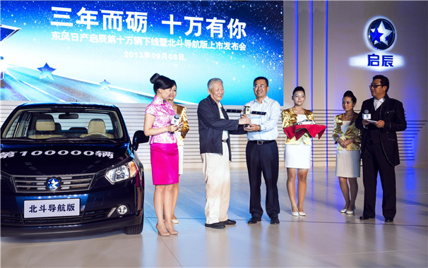 2013年9月8日,啟辰品牌誕生三周年,東風日產在鄭州工廠迎接啟辰第十萬臺新車下線,當天,全球首款搭載北斗導航系統的量產乘用車-啟辰北斗導航版也正式公布價格上市。