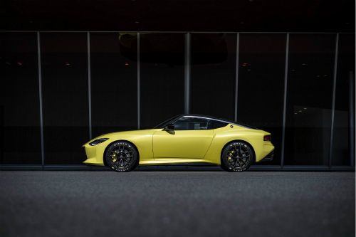 日產Z原型車的側面設計與經典的日產Z系列車型最為相似。車頂輪廓線從進氣格柵流暢地連接至方形車尾,形成了第一代Z系列跑車的獨特輪廓, 后邊緣高度略低于前擋泥板,賦予日產Z系列車型獨特的外觀。從車后四分之一到后尾低擺位置的標志性過渡使車身輪廓更加與眾不同。