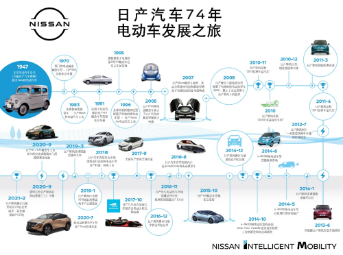 1947年,為了應對石油資源短缺,日產汽車推出第一輛電動車型-Tama純電動汽車,主要供出租車公司使用。1950年,雖然由于石油市場趨于穩定,導致了Tama停產,但日產汽車對于電動化技術研究卻沒有止步。公司在1996年推出全球第一臺搭載鋰離子電池的日產Prairie Joy電動汽車,被日本國家極地研究所(National Institute of Polar Research)在北極的極端嚴酷的環境中使用達6年之久,期間沒有出現任何電池故障。同時,由于日產Prairie Joy電動汽車的靜謐性和零排放等特點,研究人員還將其用來近距離觀察野生動物。2000年,日產汽車推出了可搭載兩名乘客的城市通勤車——日產Hypermini電動汽車,該車型最高時速可達100公里/小時,單次充電續航里程達到115公里。2010年,公司推出了全球首款量產純電動汽車——日產聆風,作為電動化出行的里程碑,迄今為止日產聆風的全球銷售量已超過50萬輛。