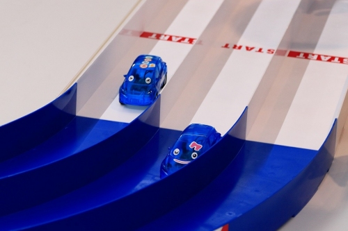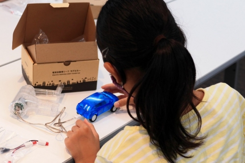 在日產(chǎn)汽車“Waku-Waku 生態(tài)學(xué)校”項目中,小學(xué)生在進行電動汽車模型試驗