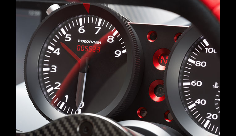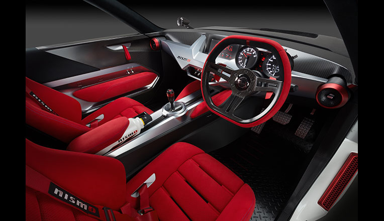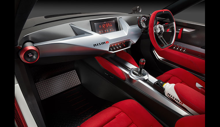 IDx NISMO的內部,可以看到靈感源于賽車的深紅色座椅套,輔之以斯巴達式的計量表,更增添了賽車般的感受。散發光澤的金屬表面,與以藍色線縫合的大紅色羊皮邊緣構成奇妙的對比。