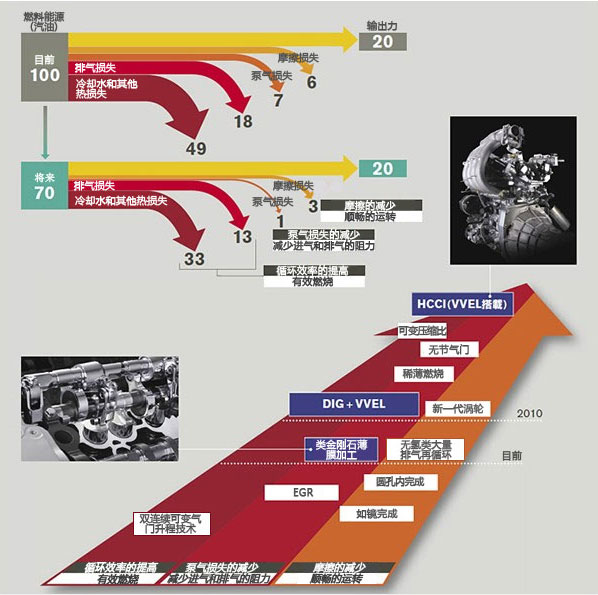日產正在從以下三種途徑入手,開發一系列技術來提高發動機的效率: